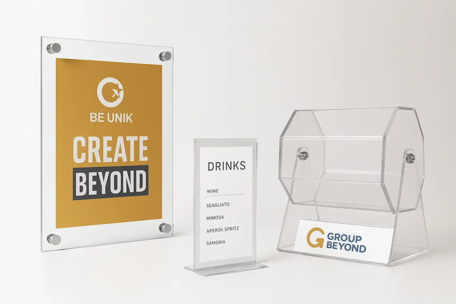 En Be Unik, entendemos la importancia de destacar en un mercado competitivo. Por eso, ofrecemos soluciones en acrílico 100% personalizadas que se adaptan a tus necesidades específicas. Desde una sola pieza hasta grandes volúmenes, nuestro equipo de expertos trabaja contigo para diseñar y fabricar productos que reflejen la identidad de tu marca con elegancia y funcionalidad.